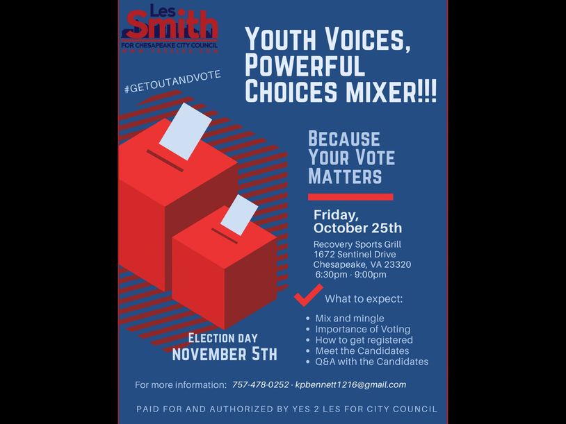 Early voting has started! Go cast your ballots today for Les Smith for Chesapeake City Council! #Yes2Les